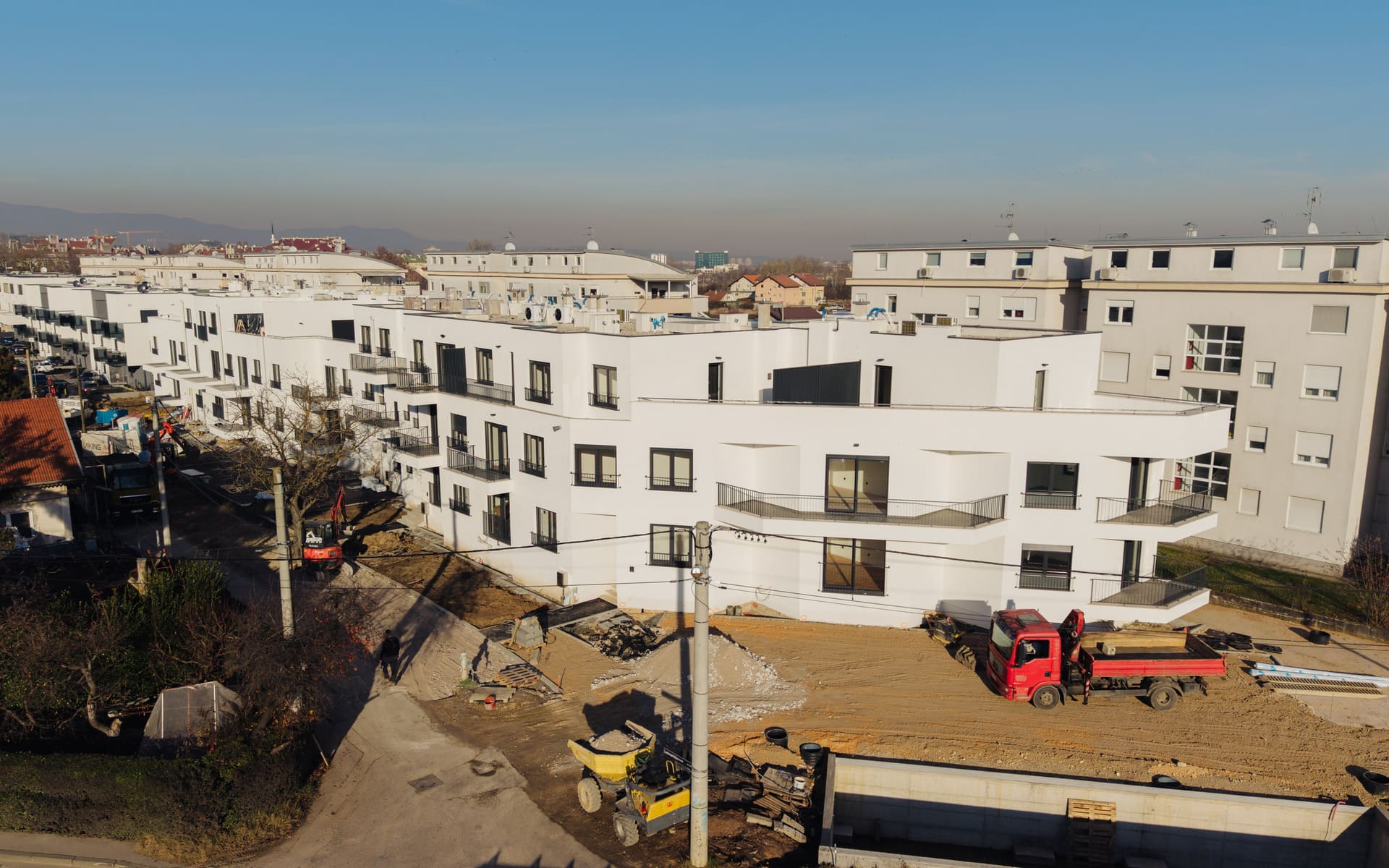 - Opis projekta: Izgradnja dvaju suvremenih stambenih objekata s ukupno 47 stanova, projektiranih prema principima moderne urbane arhitekture i visoke energetske učinkovitosti. Projekt je obuhvaćao sveobuhvatan stručni nadzor nad svim fazama građenja – od pripremnih radova i armiranobetonske konstrukcije do završnih radova i uređenja okoliša. Poseban fokus stavljen je na preciznu koordinaciju izvođača radova kako bi se osigurala besprijekorna kvaliteta izvedbe i poštivanje dinamičkog plana. Rezultat su objekti koji nude visoke standarde stanovanja i usklađenost sa svim zahtjevima investitora i korisnika.